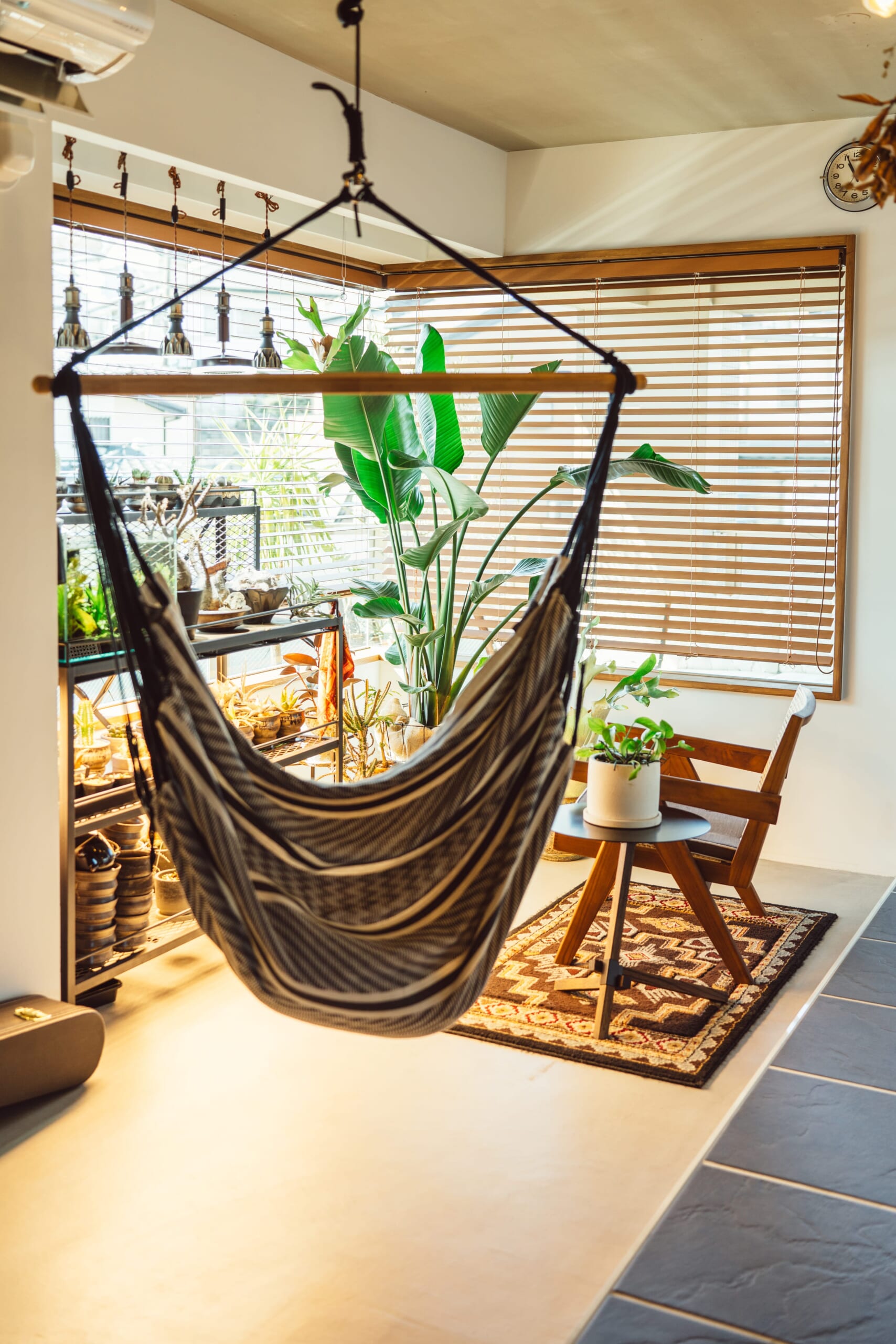 植物はもっぱら熱帯系。この数年いろいろな鉢植えを育ててきた末に、奇抜でもあり美しくもある姿態が魅力の塊根植物にたどり着いた。根や茎が水分を蓄えて肥大して、こんな形になるという。